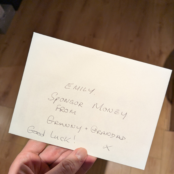 Good luck with the run Emily, love from both of us xx