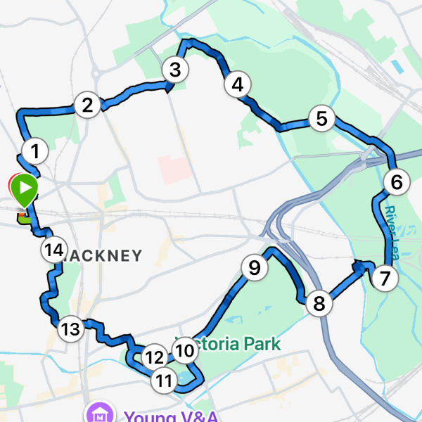 Happy with a slow run at the weekend seeing the sights of East London joining the parks; Hackney Downs, Millfields, Hackney Marshes, River Lea, QEP Olympic Stadium, Regents Canal, Victoria Park, London Fields circa 15kmFinished! And thank you to sponsors
